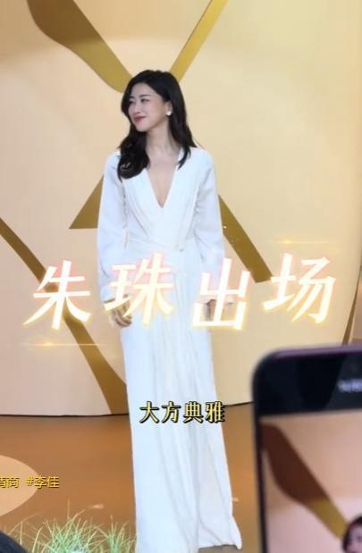 前几日,女星朱珠现身杭州某品牌活动,一袭白色柔美长裙搭配大波浪长发,一出场便惊艳全场。